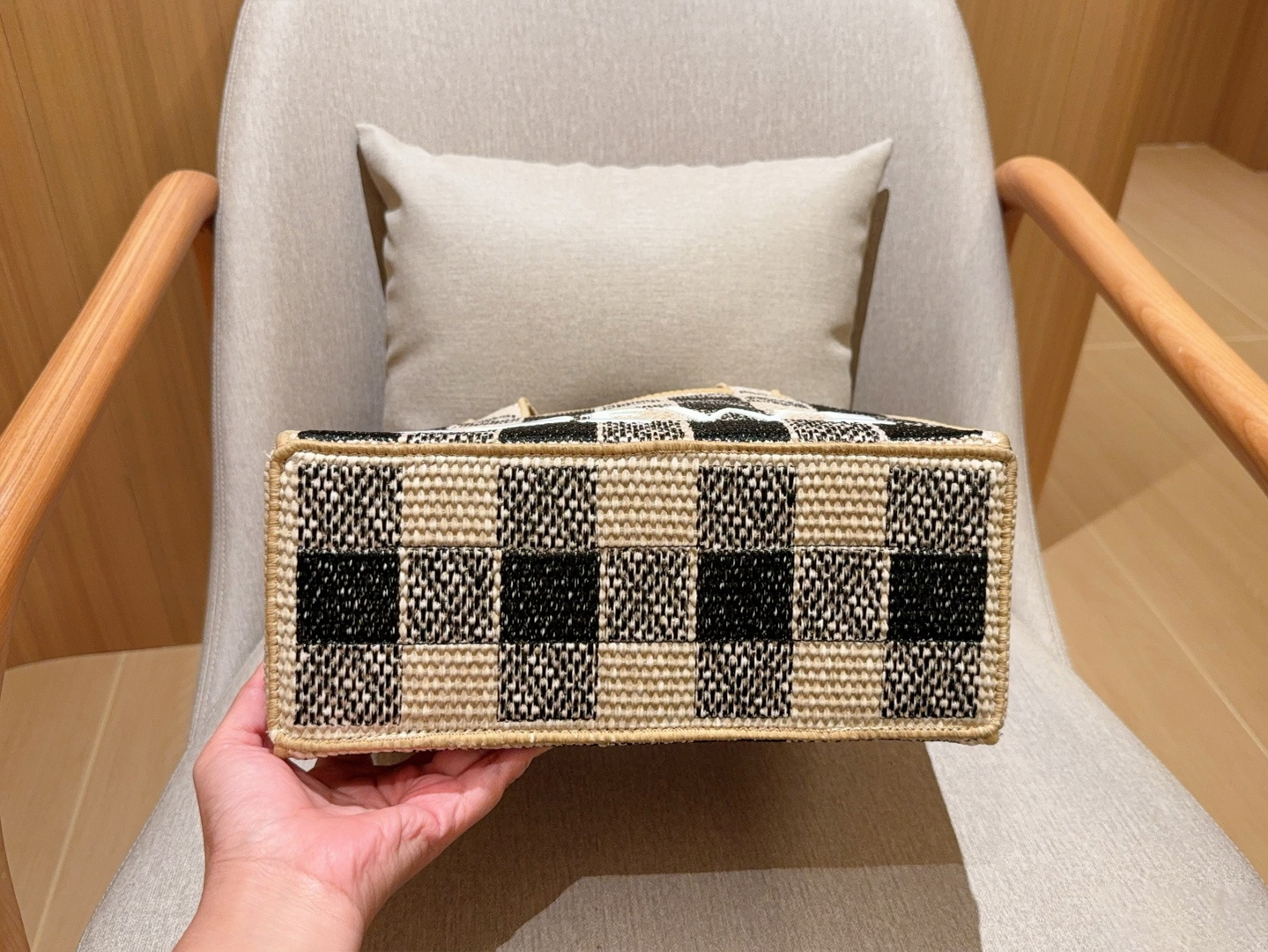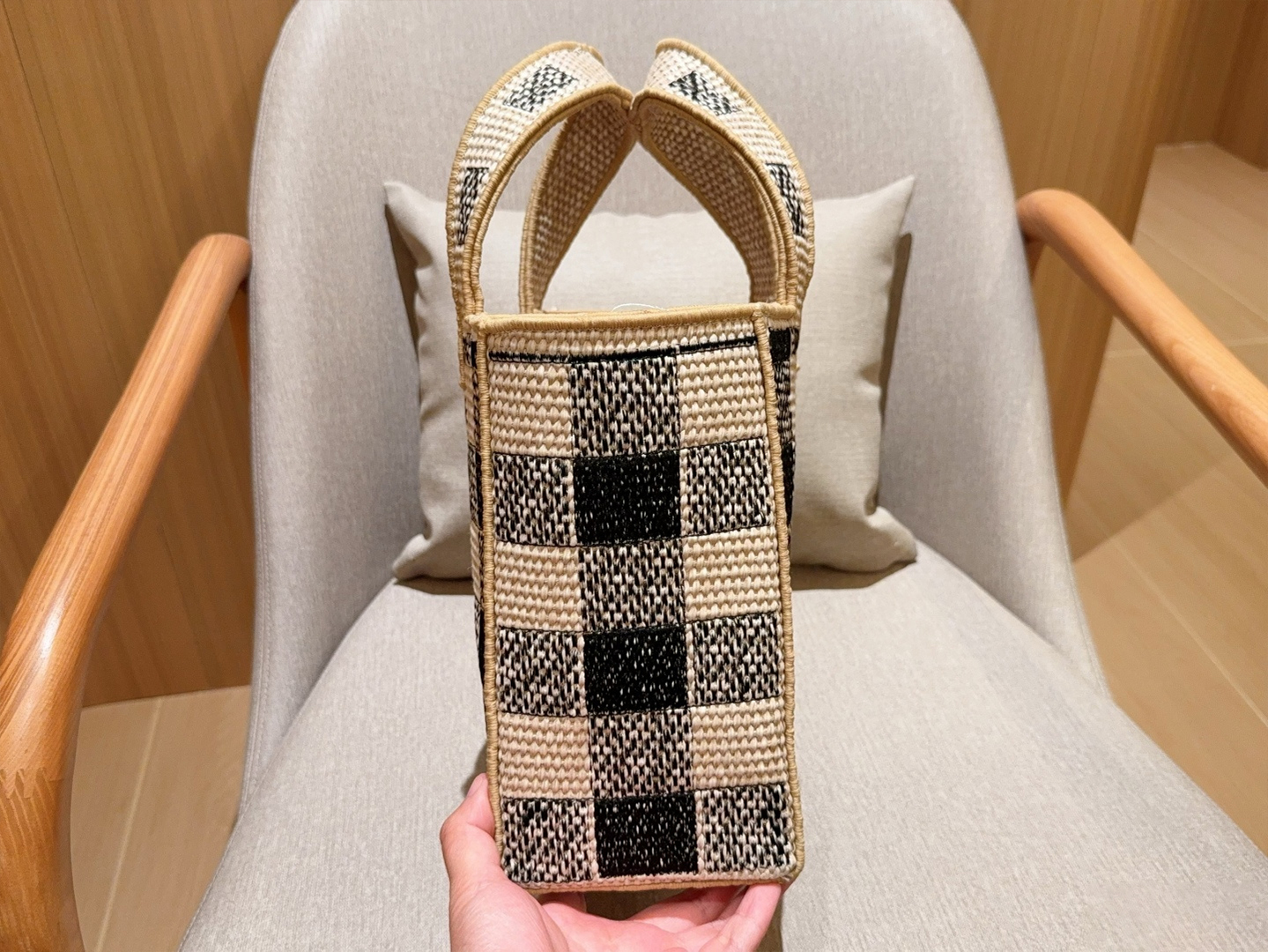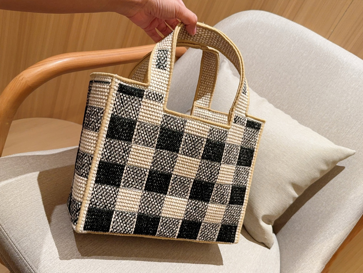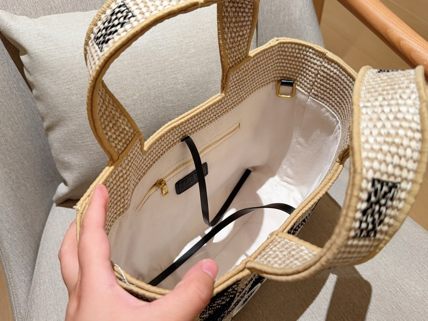 LoeweWoven bag is here 🔆Black-and-white checkered embroidered-logo straw basket tote bagCrossbody availableDimensions: 30×24×13 c
