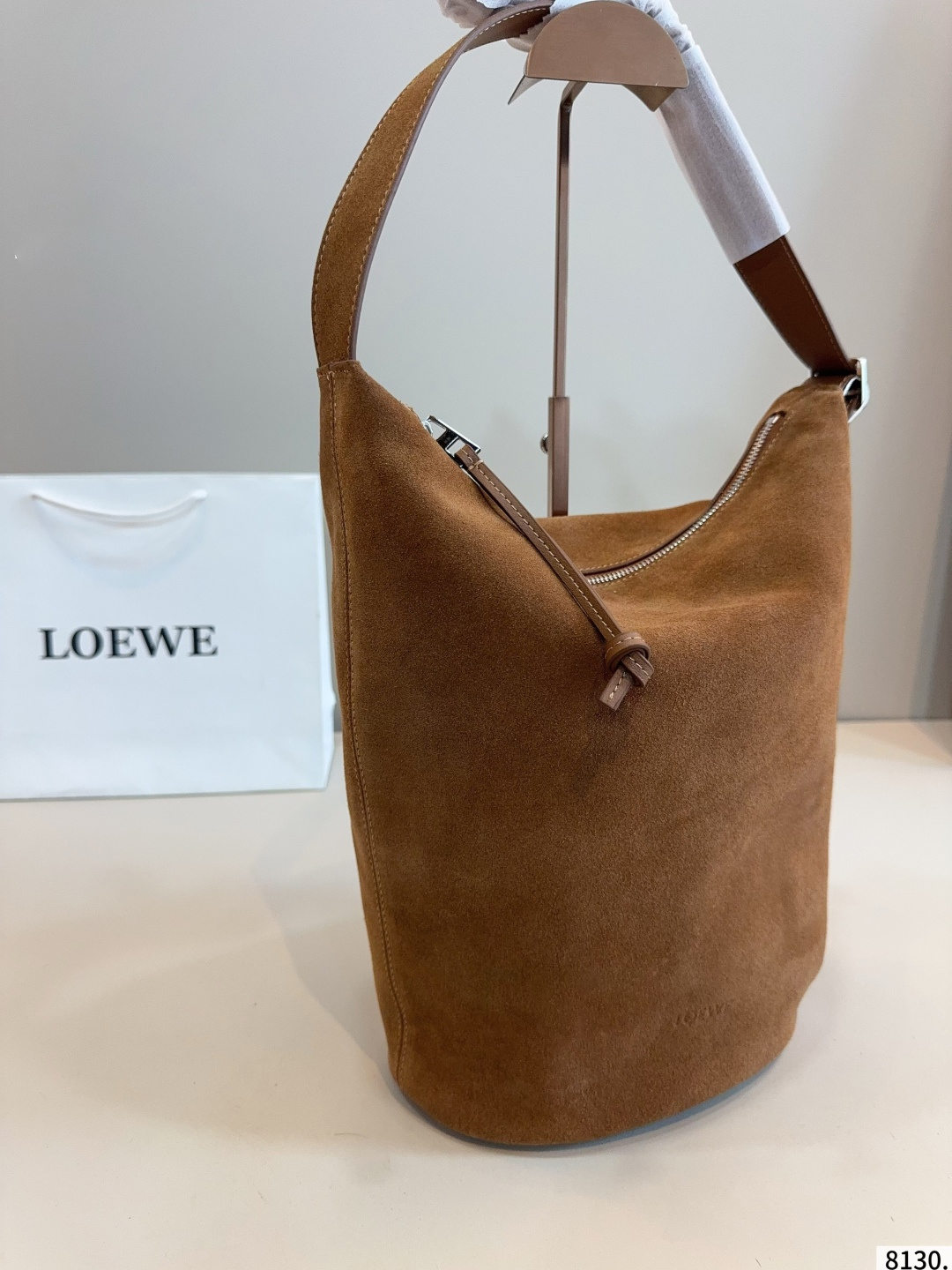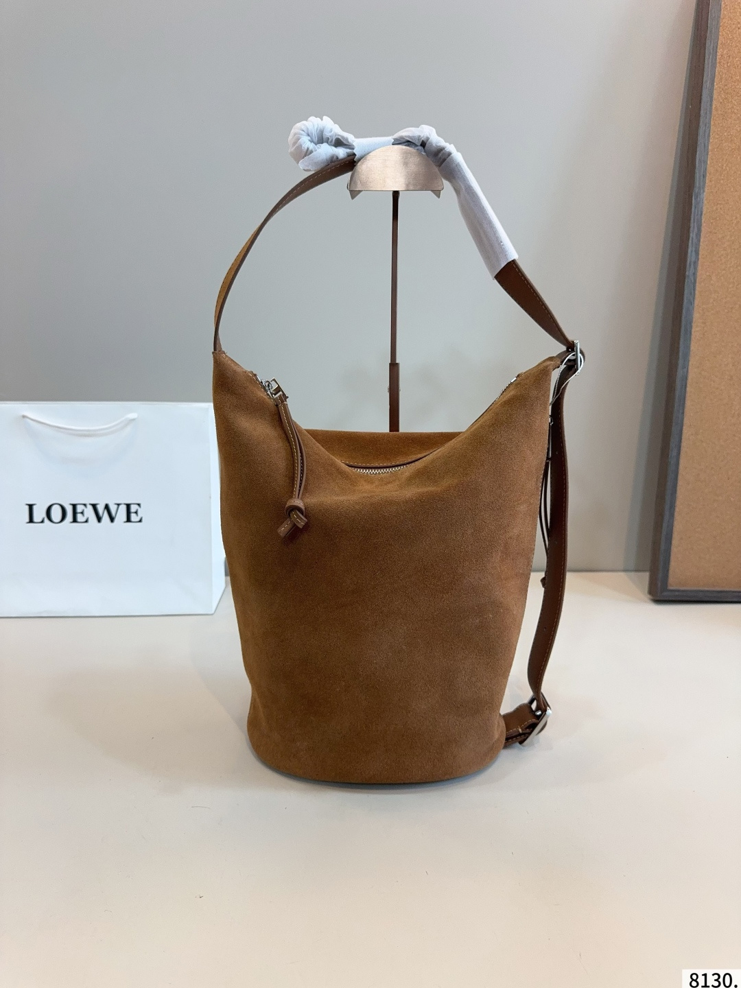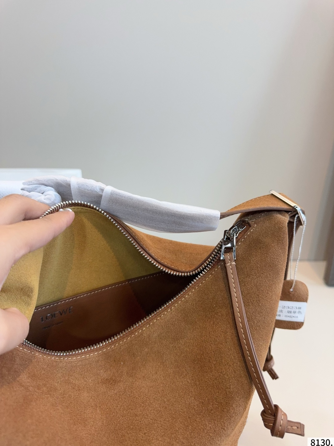 #Loewe's new loop suede leather bag, equipped with adjustable shoulder straps and zippers, can be carried horizontally or vertically. [thumbs up R]
