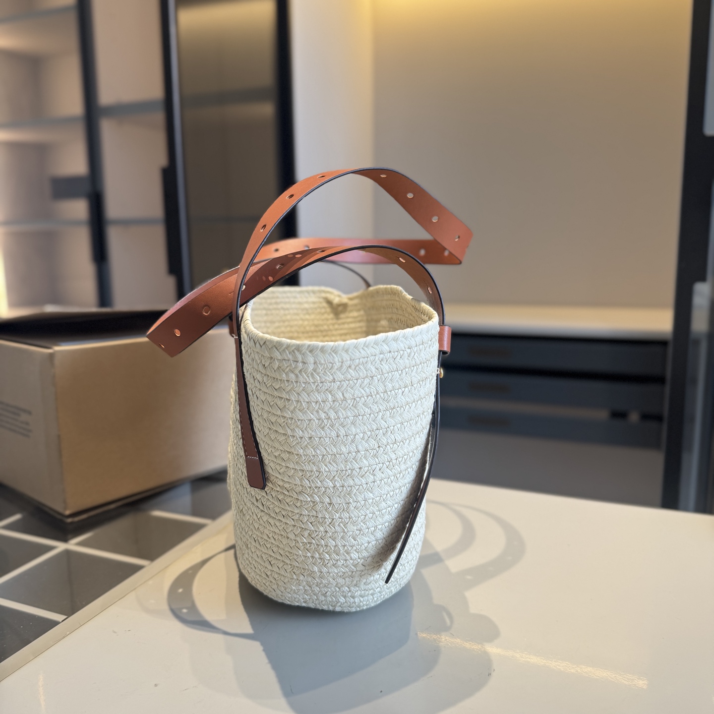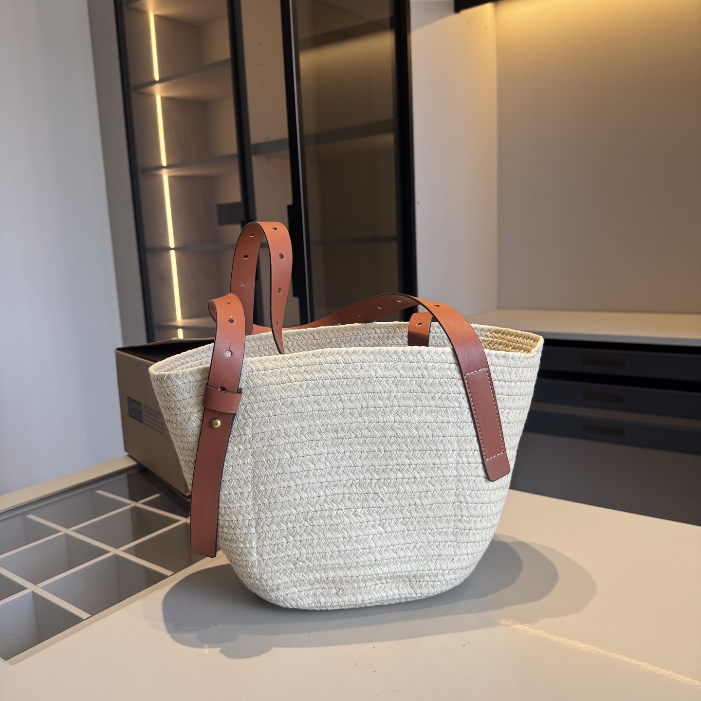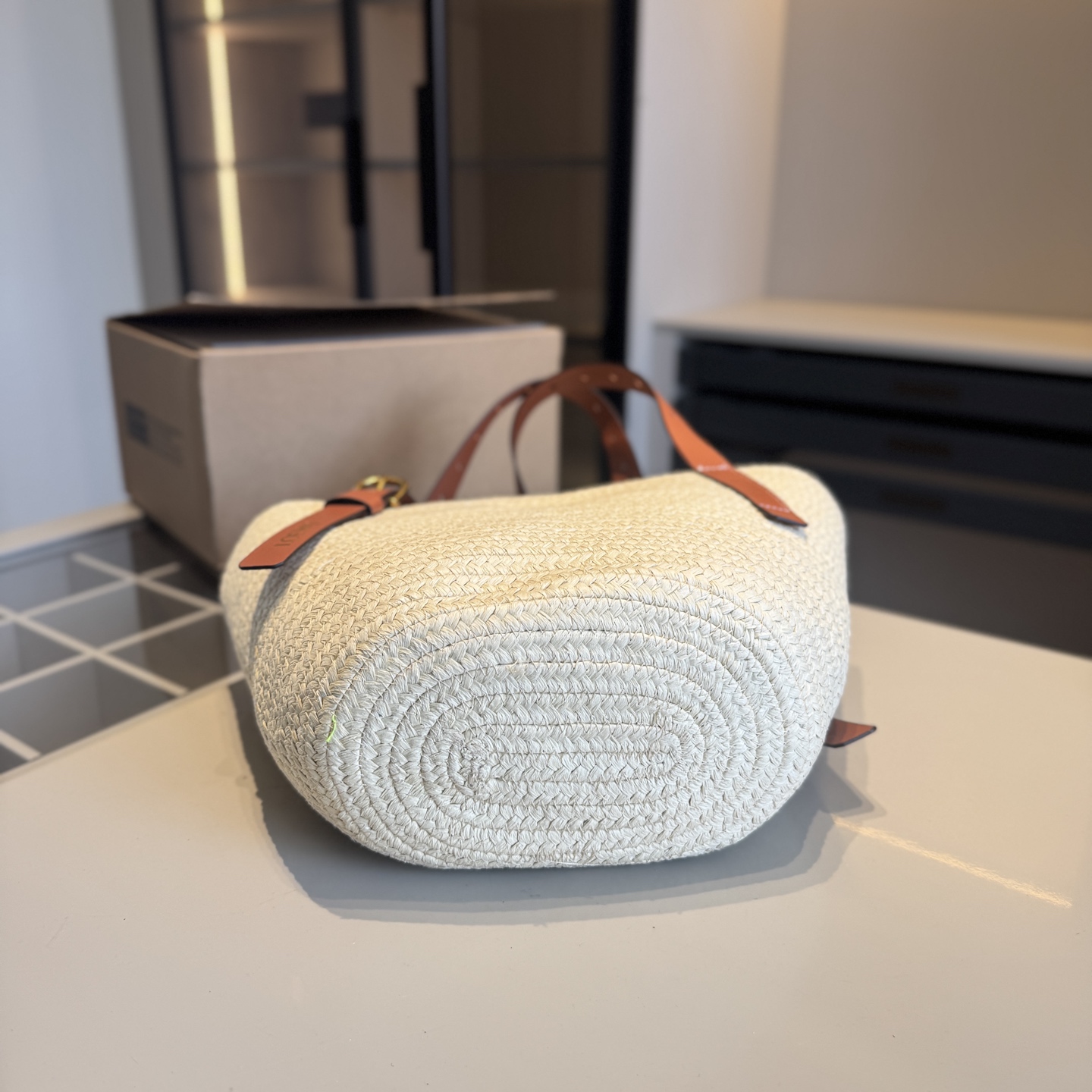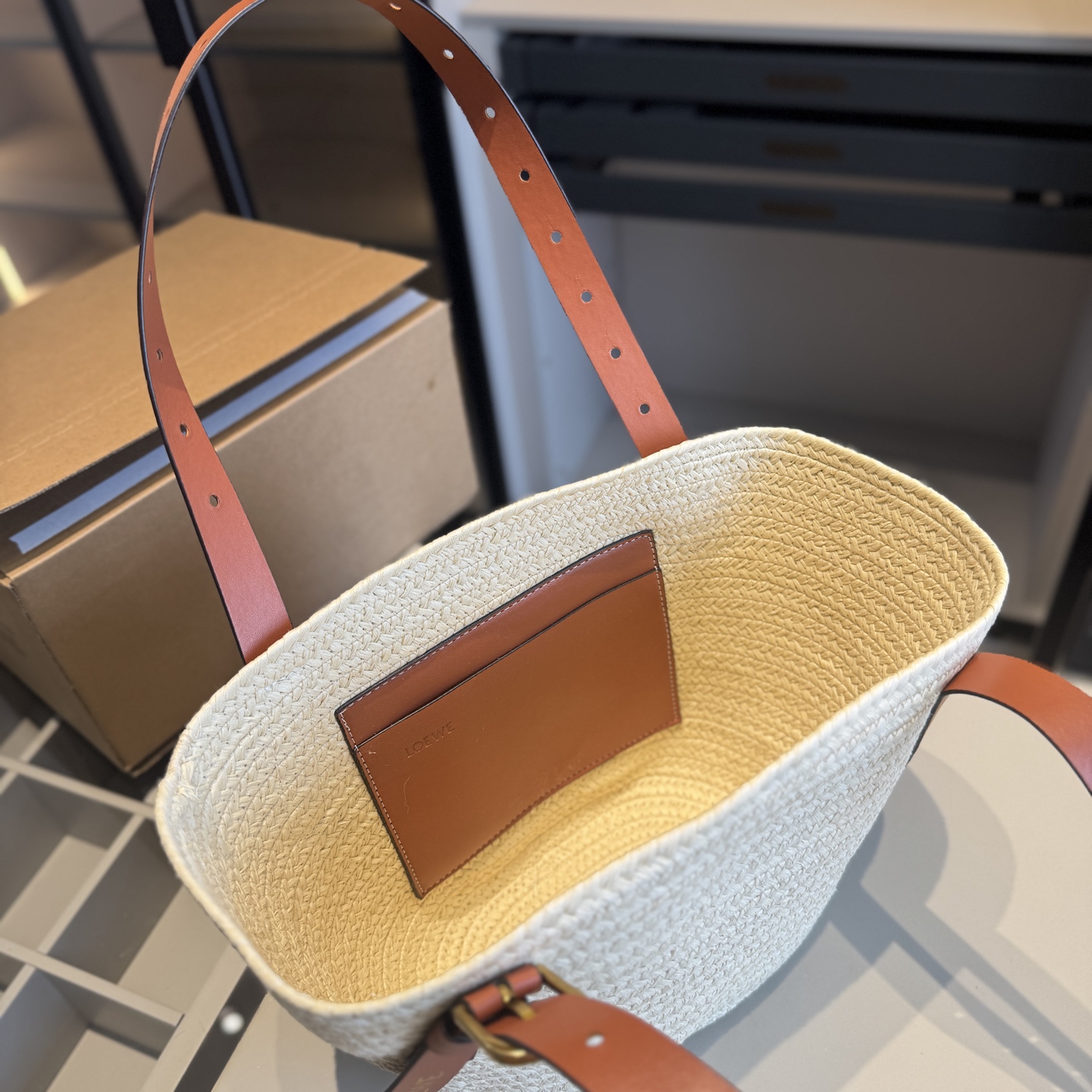 High end goods 🔥 LOEWE counter new vegetable basket bag~woven bag 👍 High end goods! Same style at the counter~Popular items sought after by major celebrities~Woven from palm leaves and cowhide ‼️ Use the best hardware accessories! Classic logo! Top quality workmanship! Comparable to counter quality ✈️ Airplane box packaging (size: 20 * 22 * 12, upper opening 40)