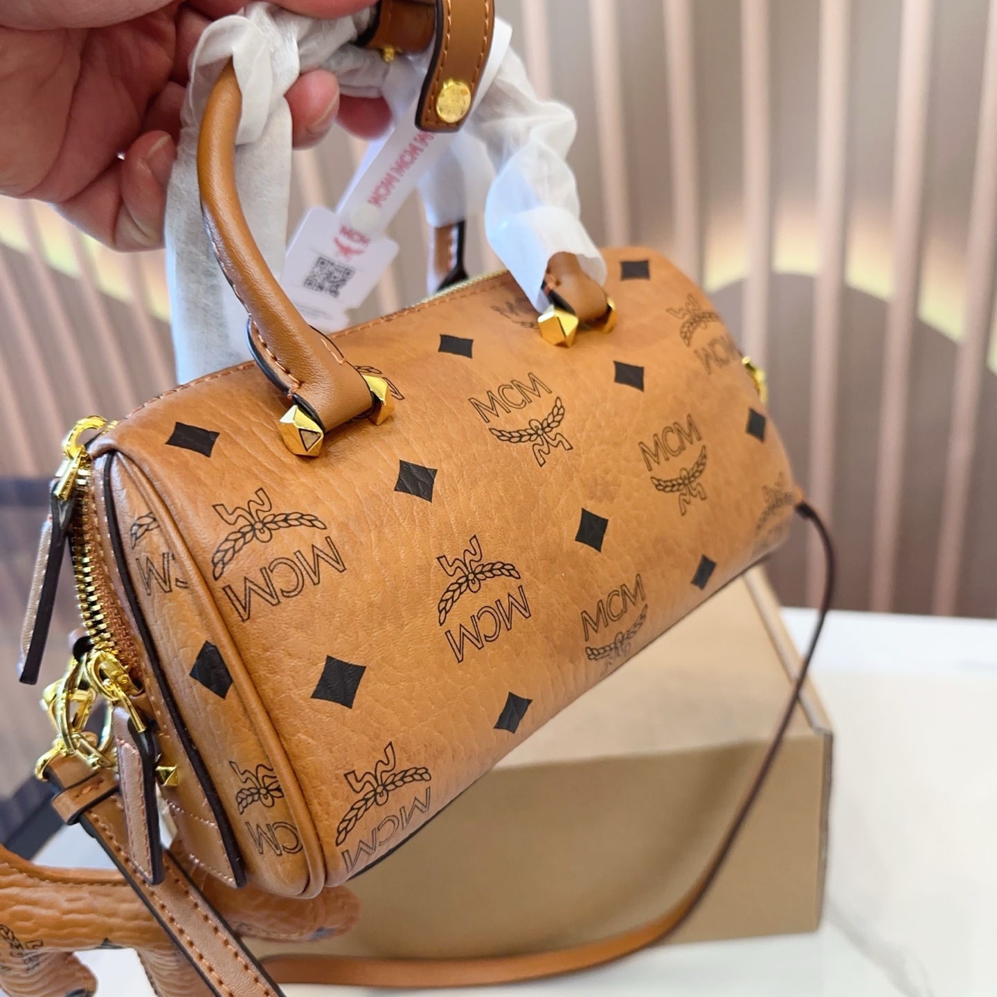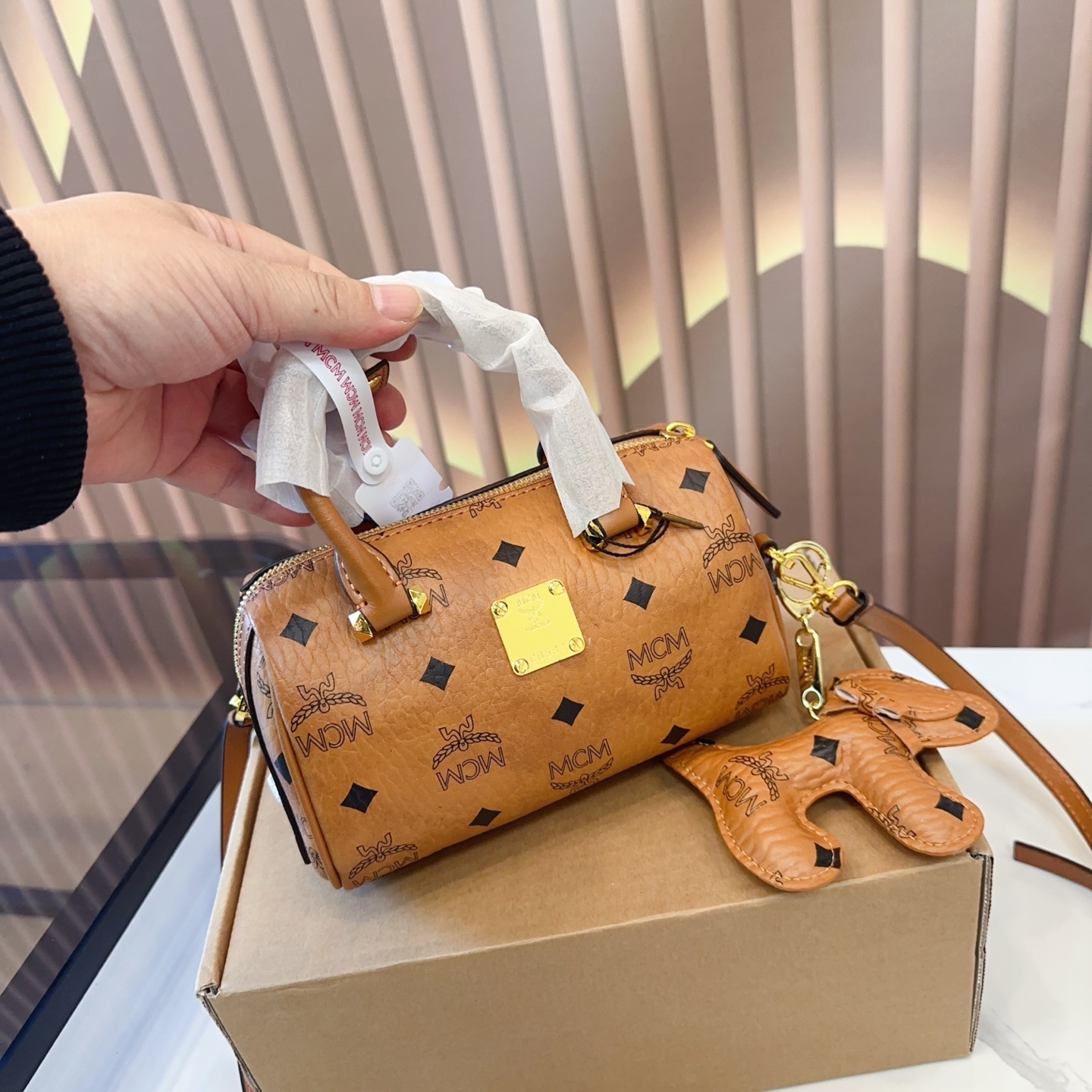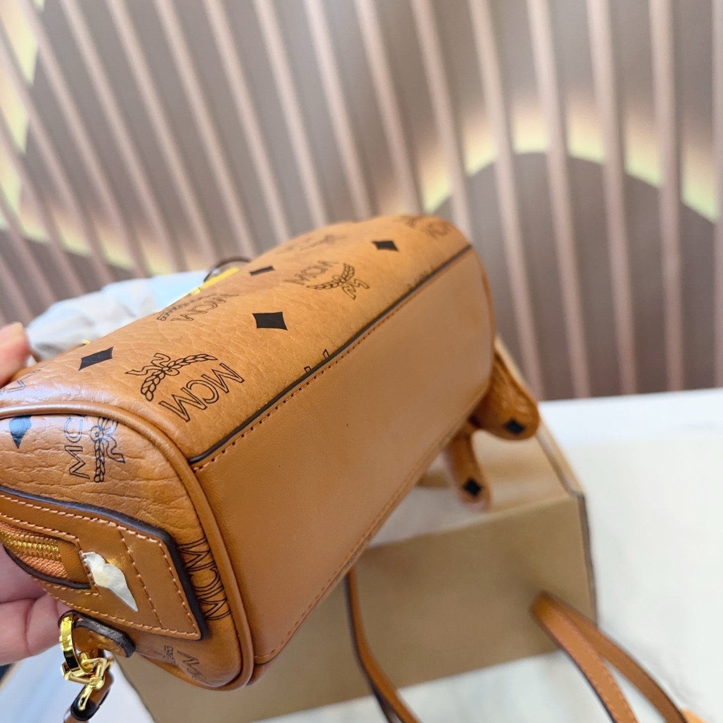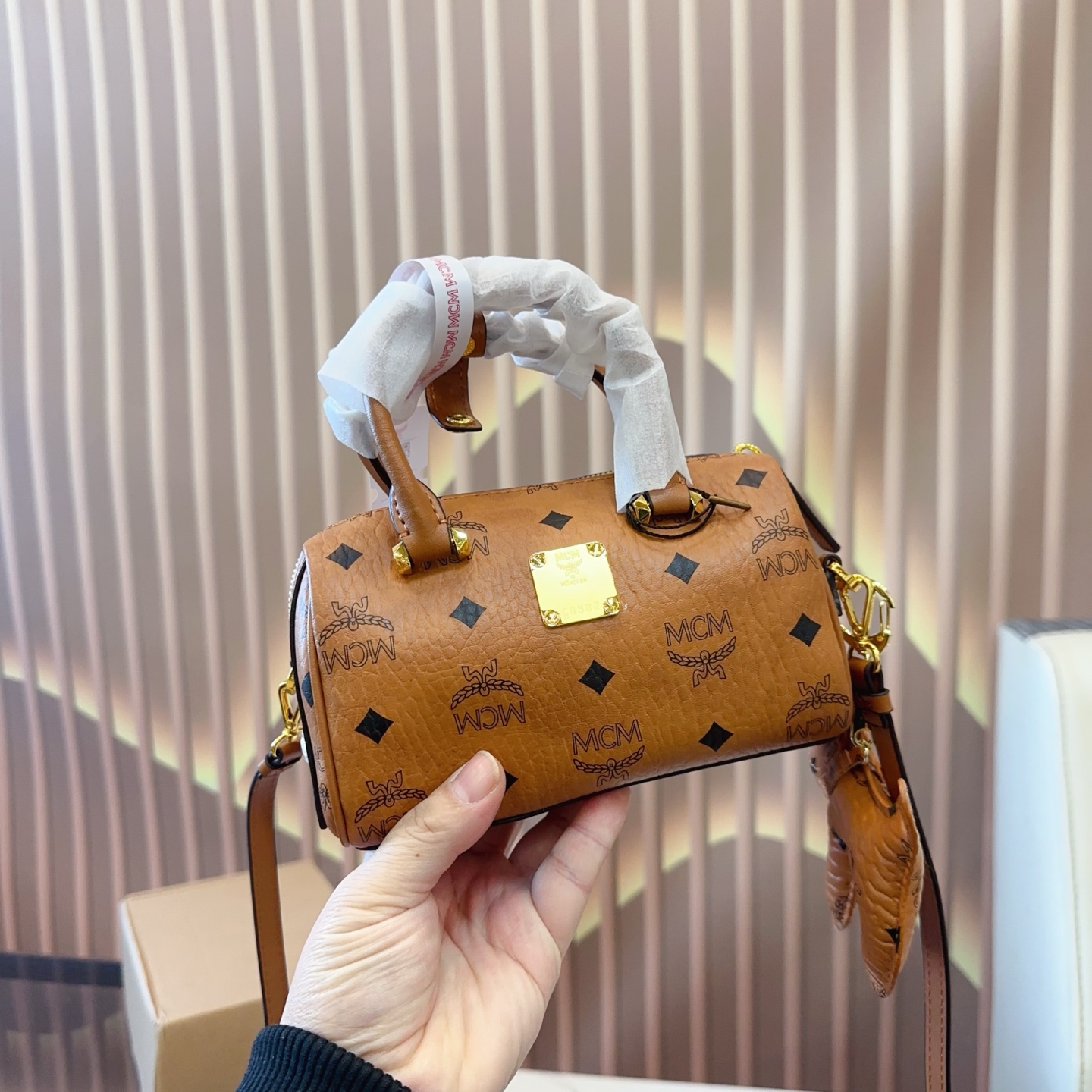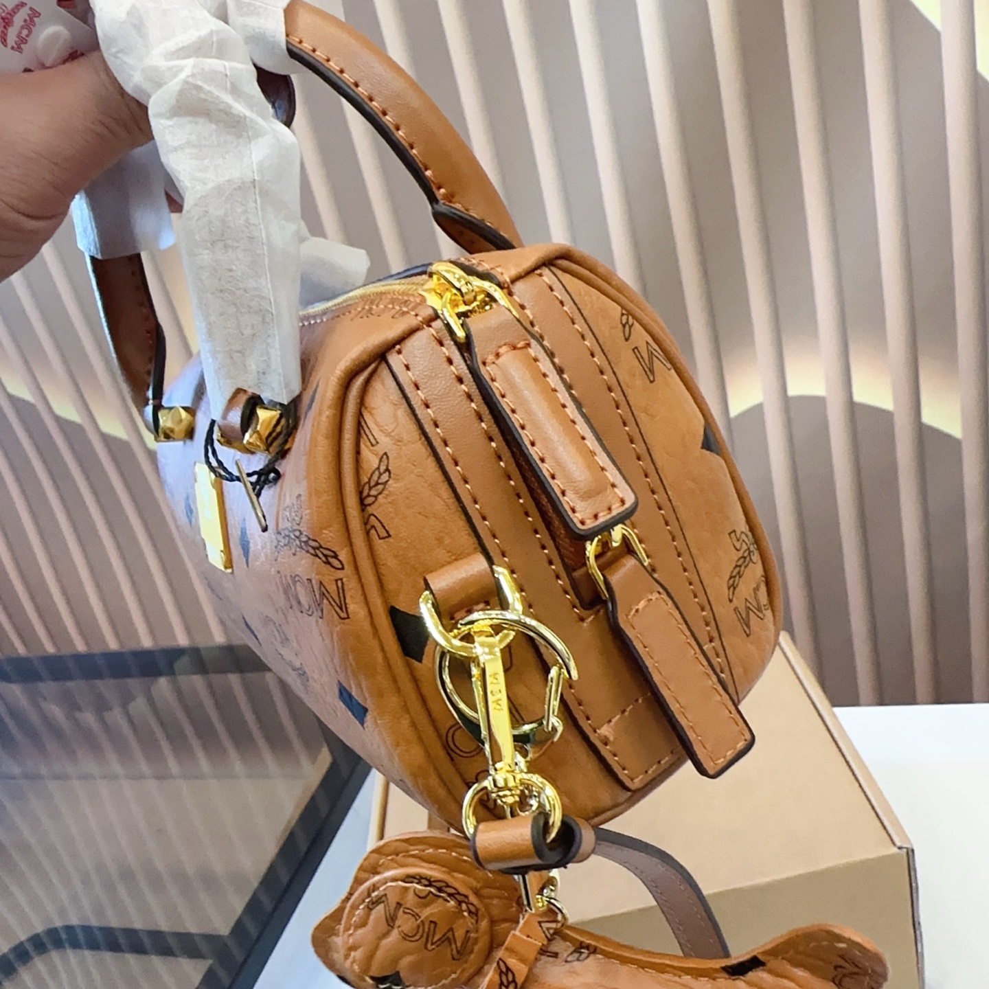 mcm mini Boston Pillow Bag