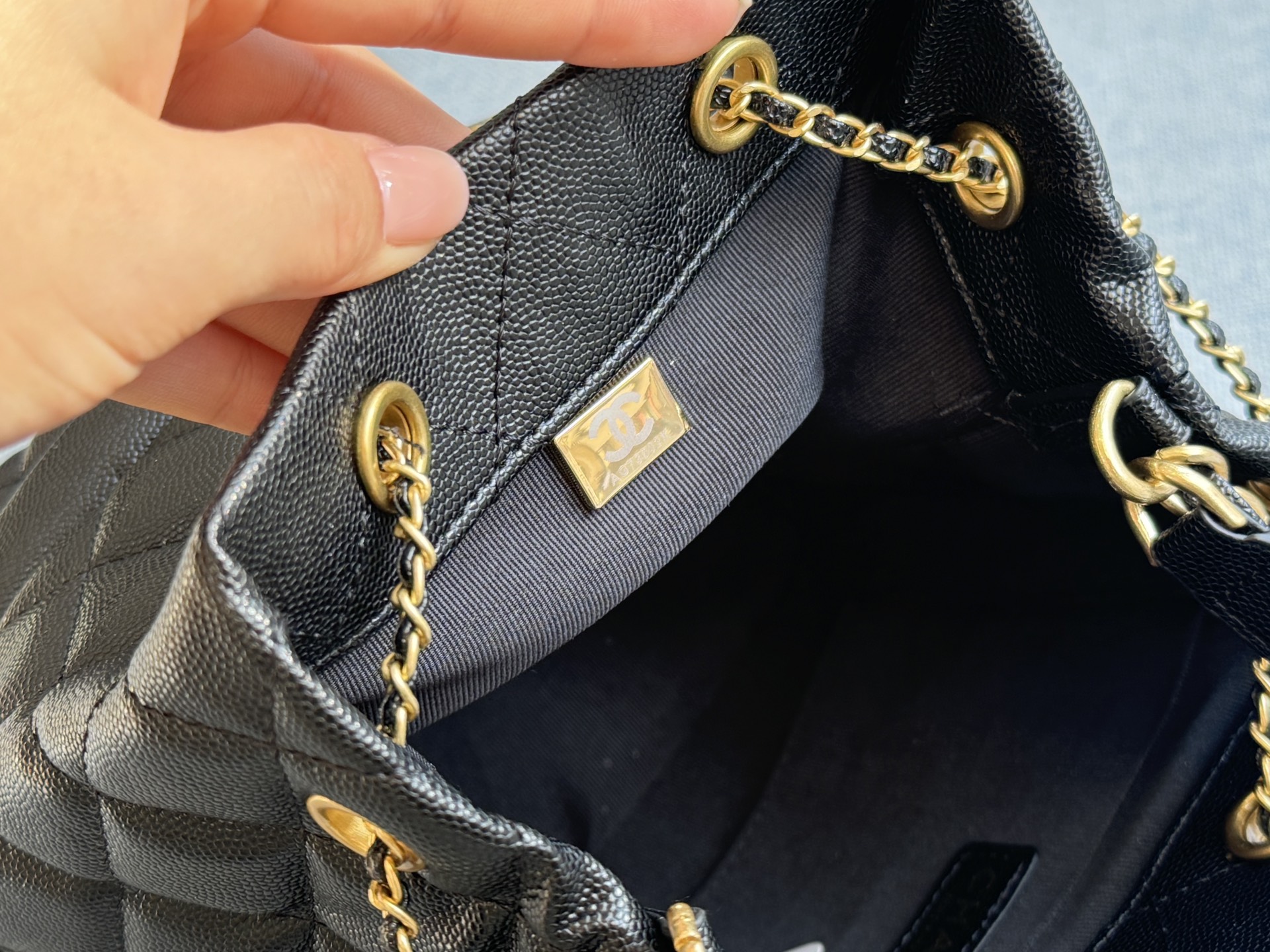 CHANEL Caviar Drawstring Handheld Bucket Bag