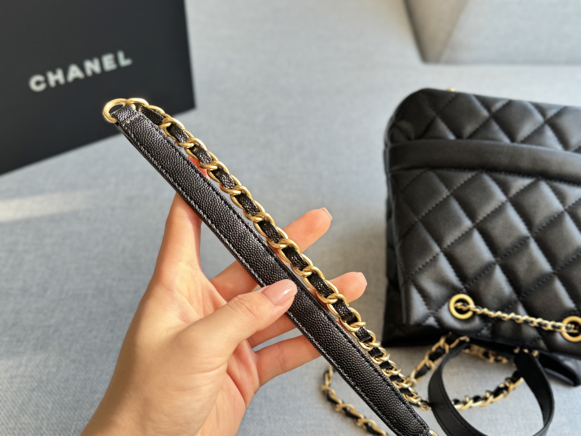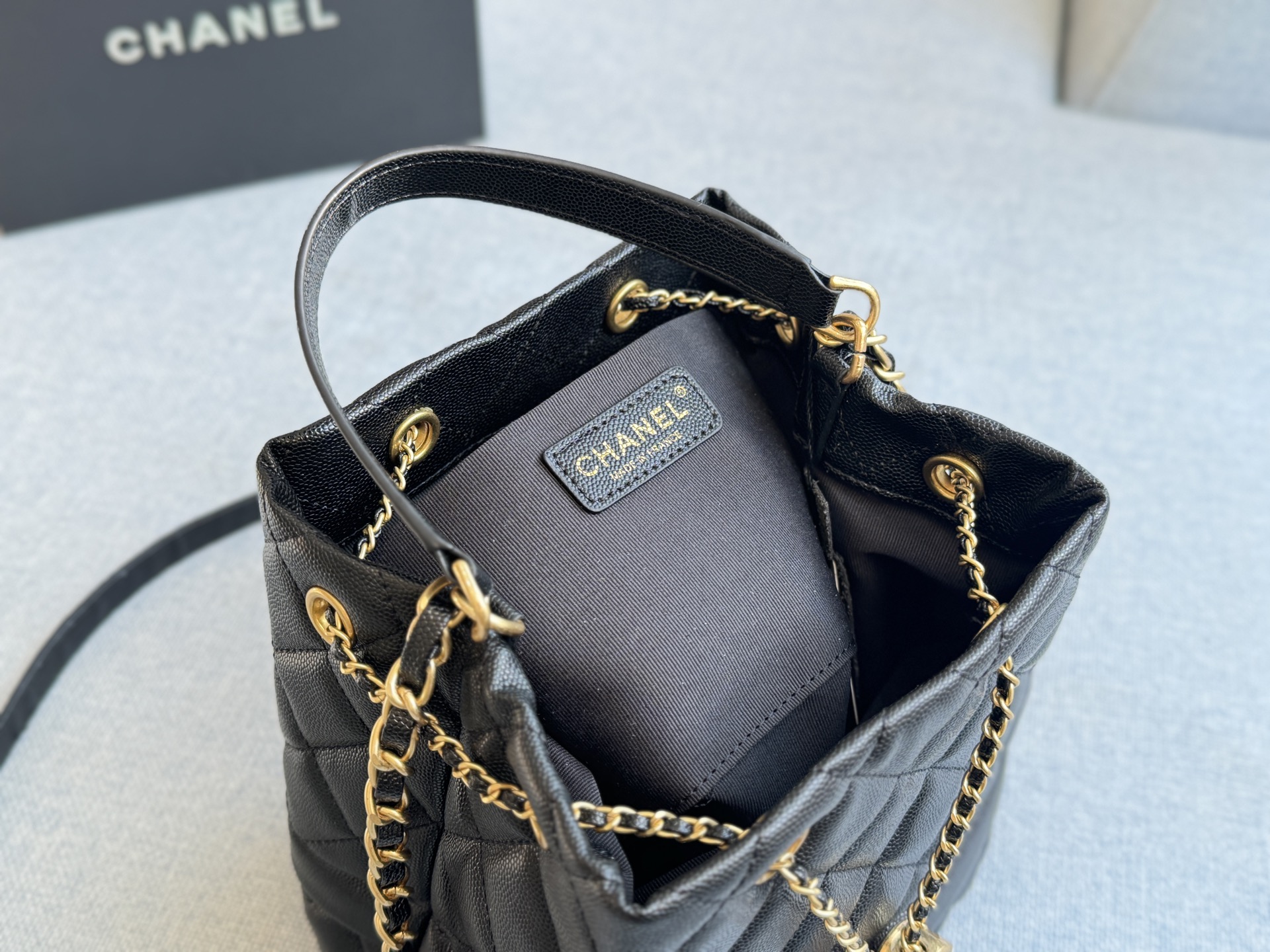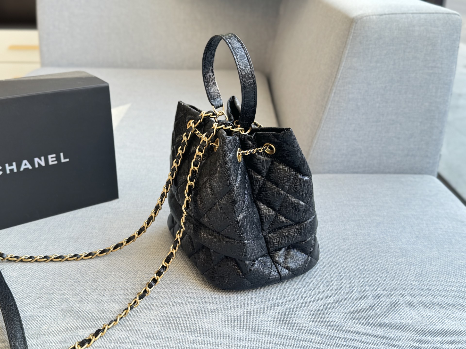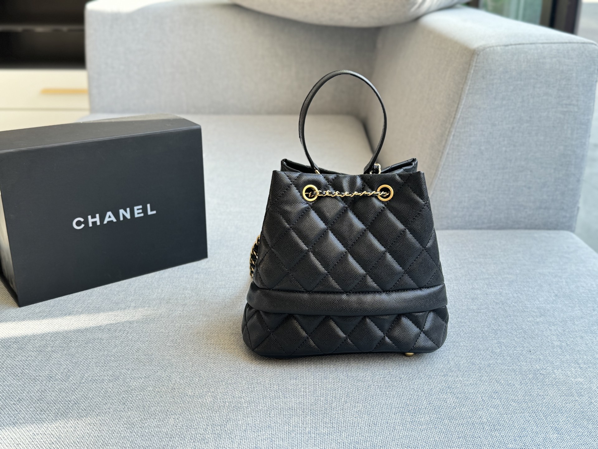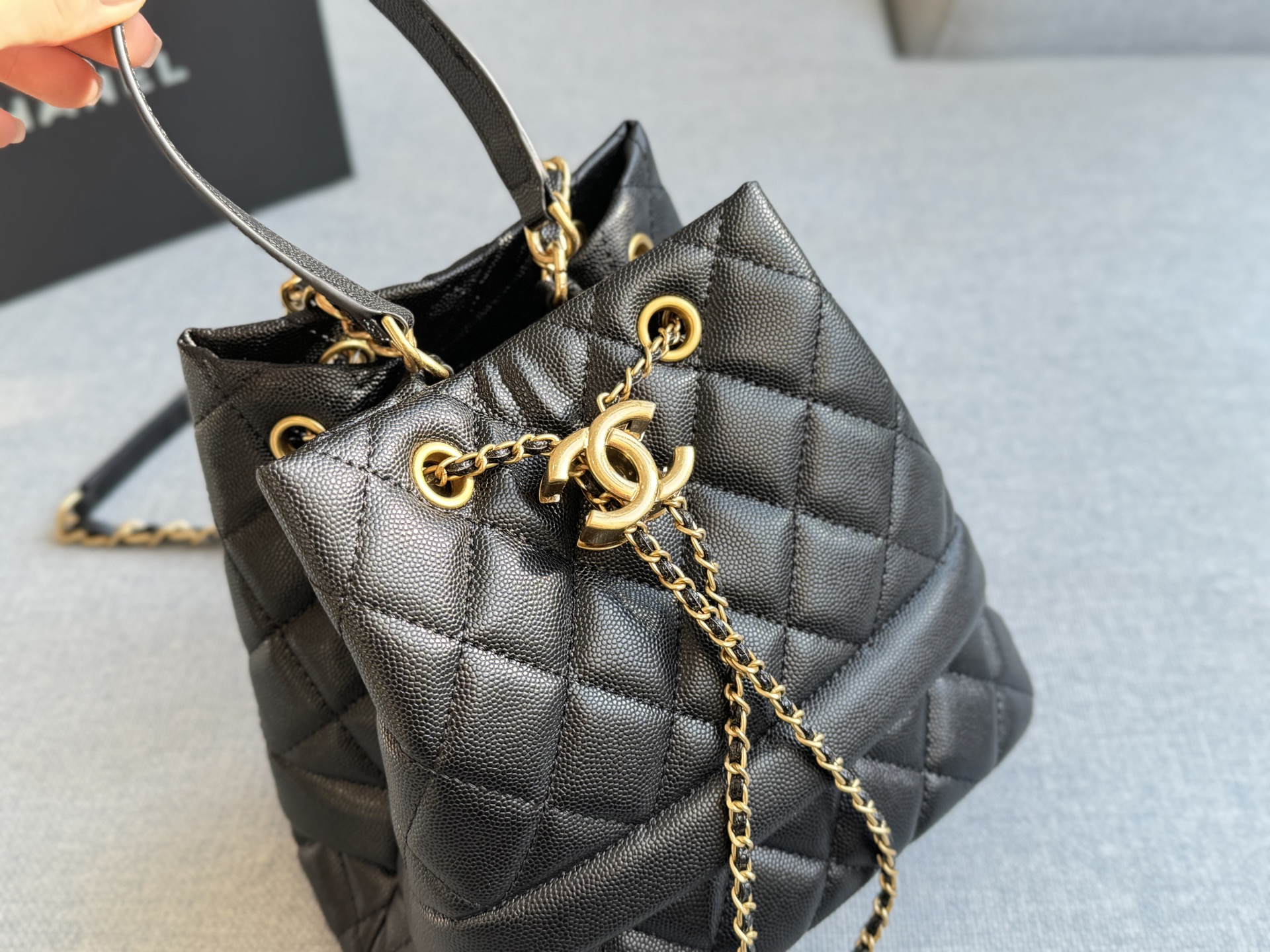Chanel drawstring hand-held bucket bag