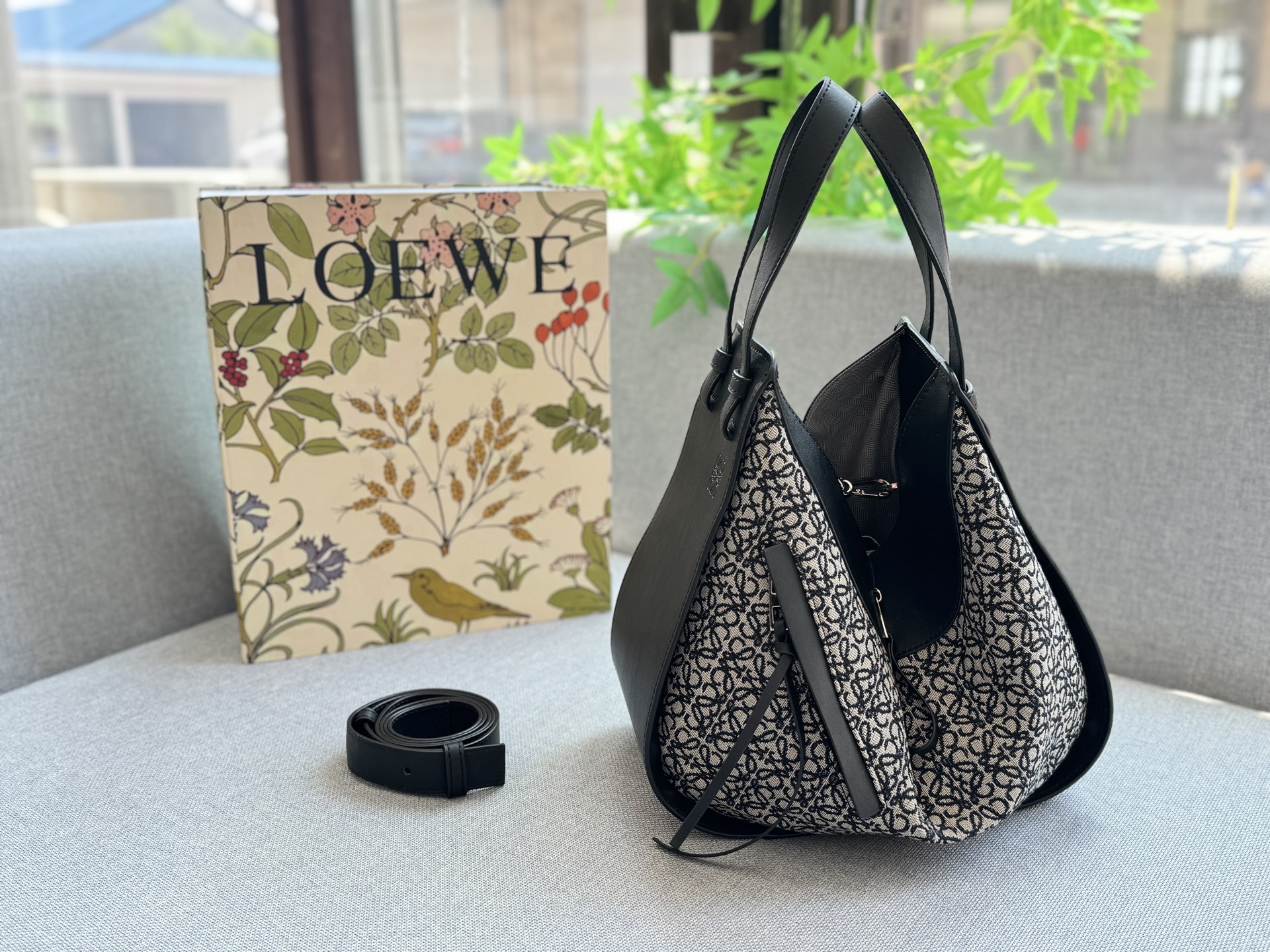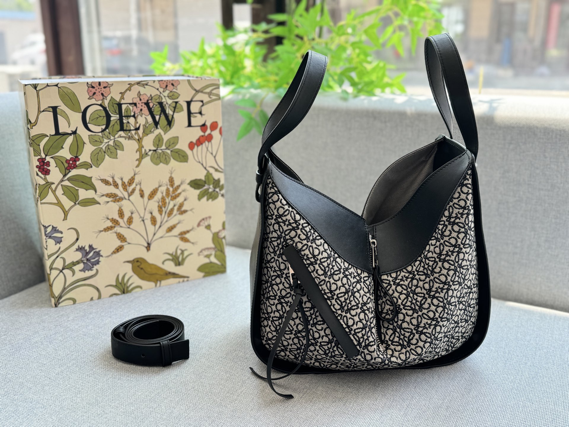 LOEWE Hammock canvas color blocked hammock bag, hand-held single shoulder crossbody bag